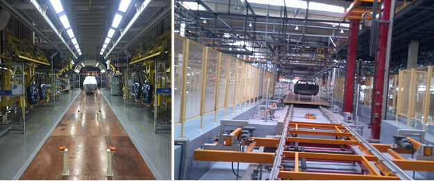 滑板式輸送機由滑板、摩擦驅(qū)動組成。主驅(qū)動利用摩擦驅(qū)動輪驅(qū)動滑板兩側(cè),該滑板靠此推力又將前面的滑板向前推送,這樣就形成連續(xù)輸送?;遢斔蜋C同時移動車身和進(jìn)行裝配的操作工人,使工人在裝配工序的操作更加容易。